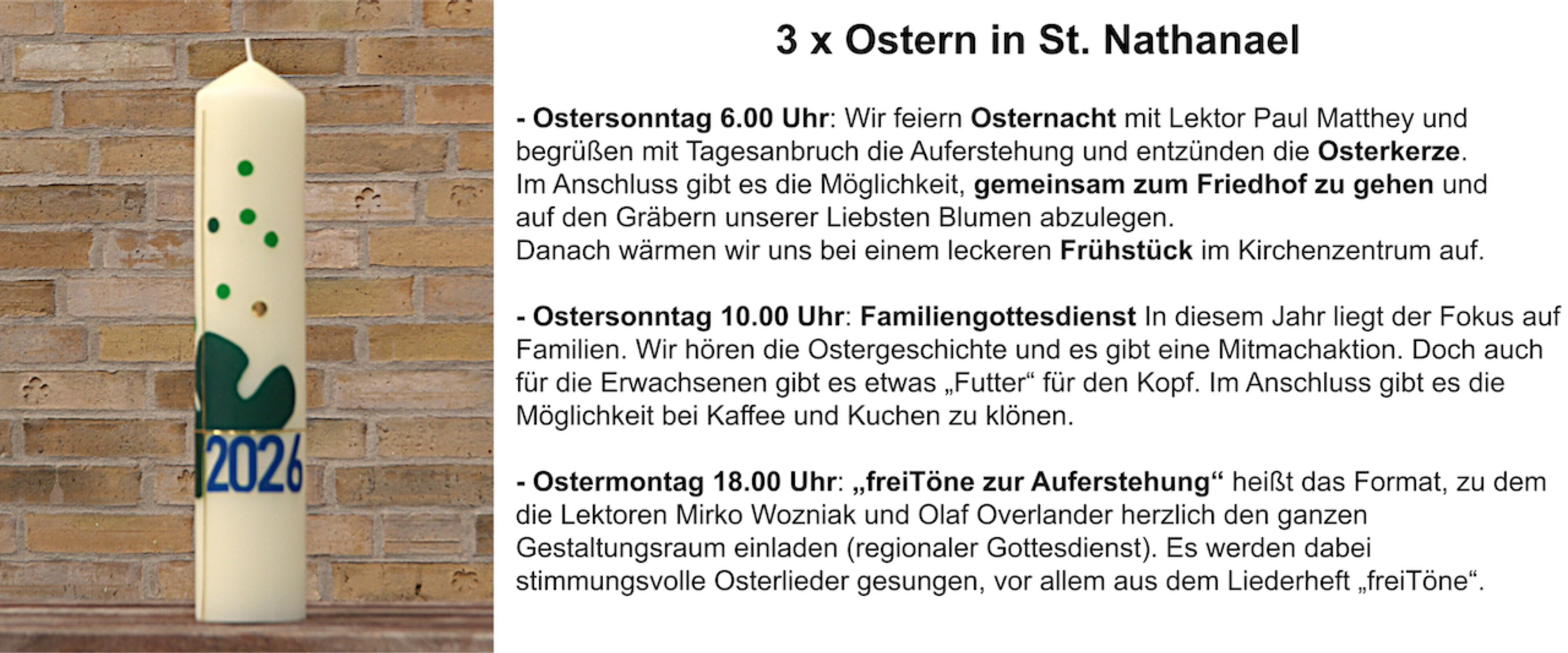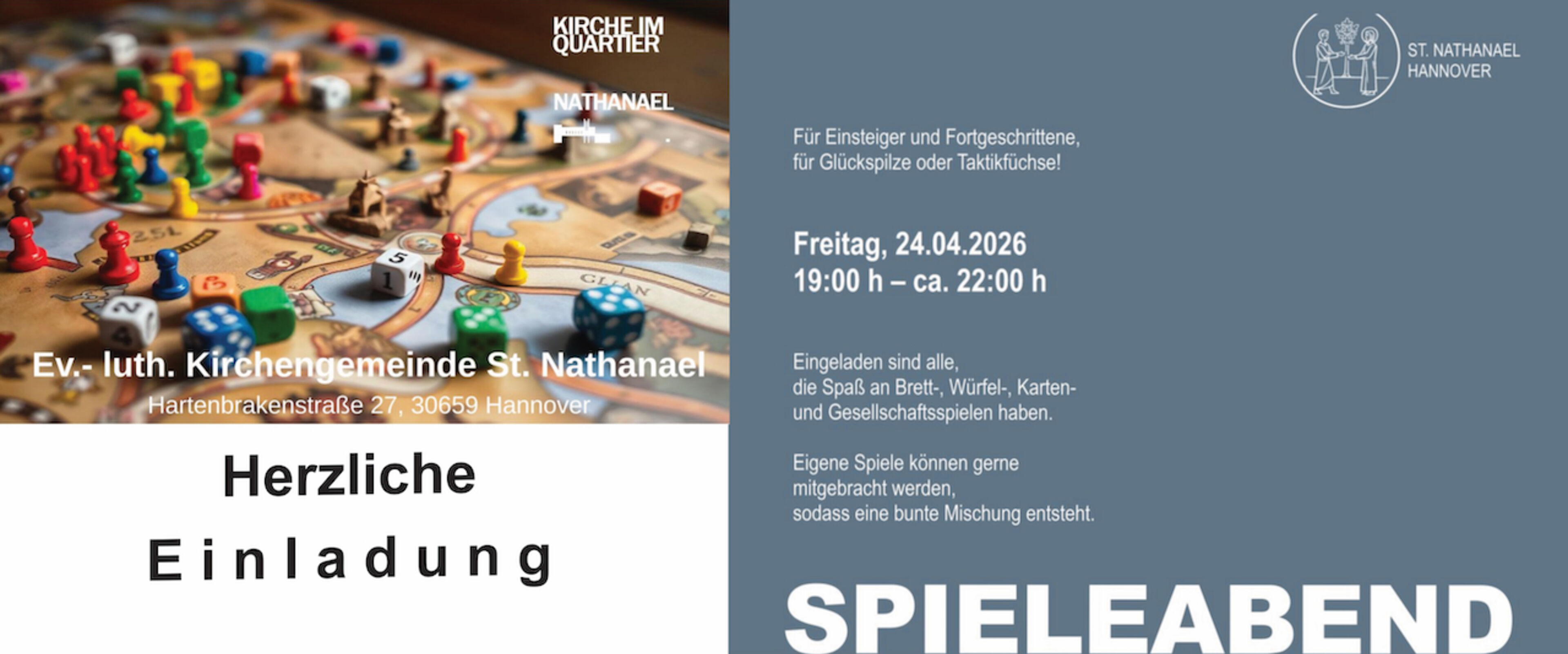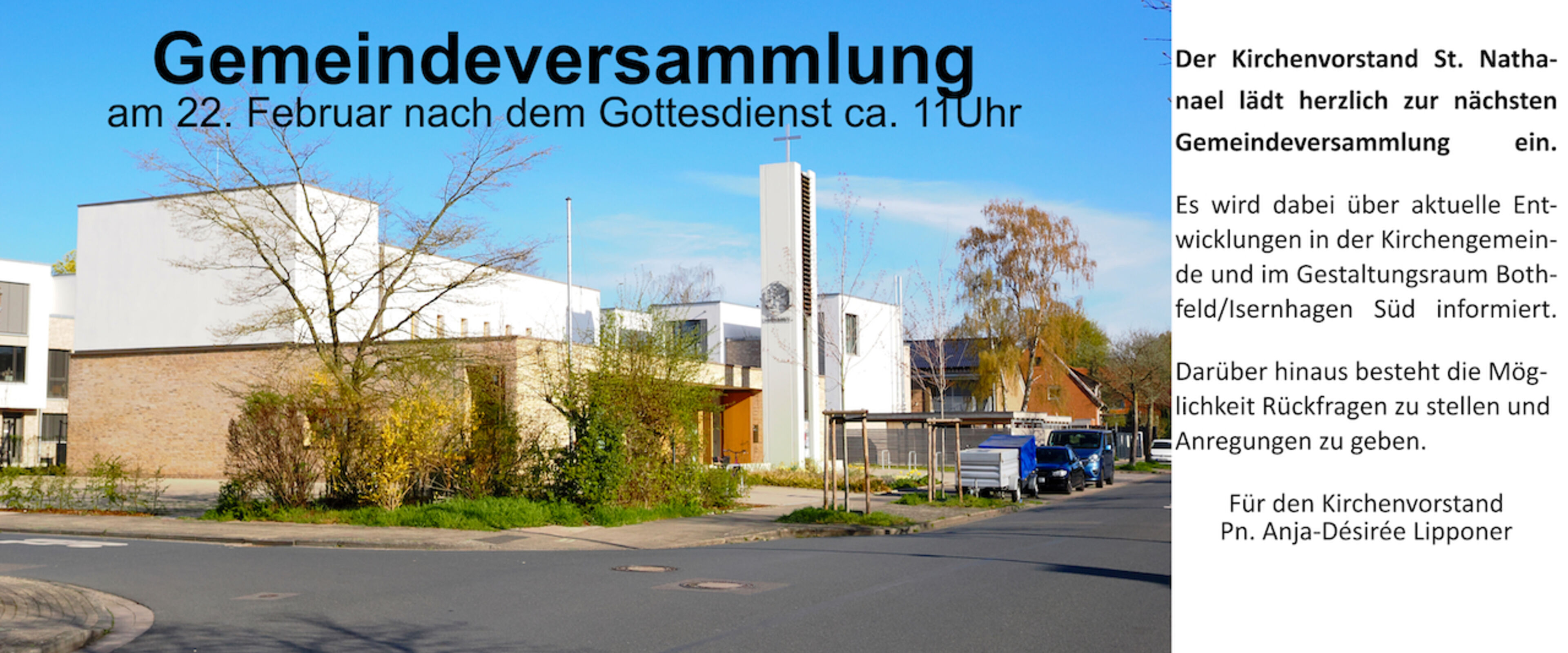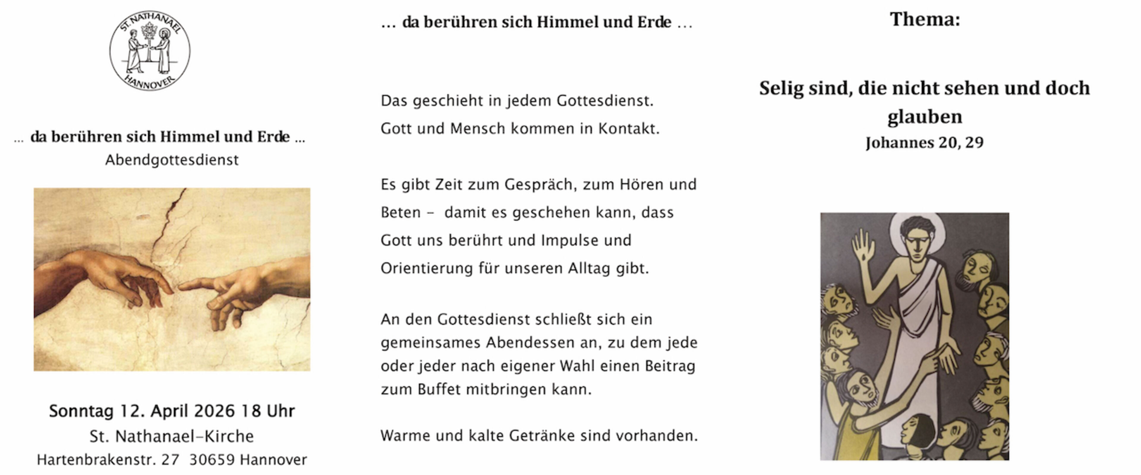 Möchten Sie regelmäßig Informationen, Tipps, Veranstaltungshinweise und Neuigkeiten aus der St. Nathanael Kirchengemeinde erhalten ? Dann geben Sie hier Ihre E-Mail-Adresse ein: