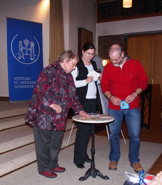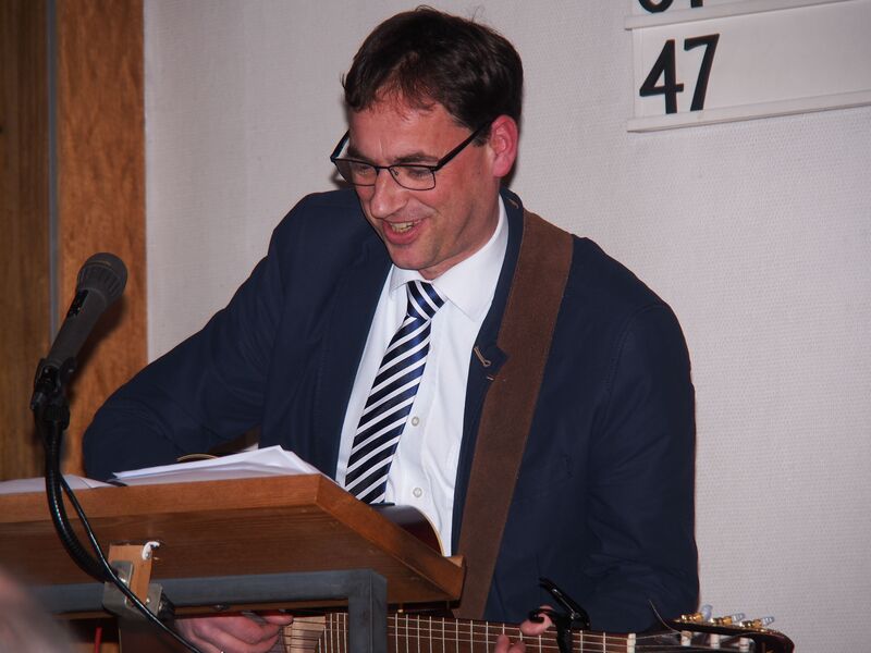Die Gedanken der Reformation wurden nicht nur per Flugblatt, sondern auch per Musik mit fröhlicher Melodie verbreitet, wie Pastor Dr. Vasel mit der Gitarre demonstrierte. Pfarrer Kaleth überraschte mit "typisch katholischen" Geschenken. Der Lutherprojektchor unter Leitung von Yvonne Nickel umrahmte den Abend und lud mit dem Lied "Selber denken" zu einem Quiz ein. Mit einem großen Preis rund um die Reformation, konzipiert von Ilse Köpke-Degener, konnten die Teilnehmer ihr Wissen testen.