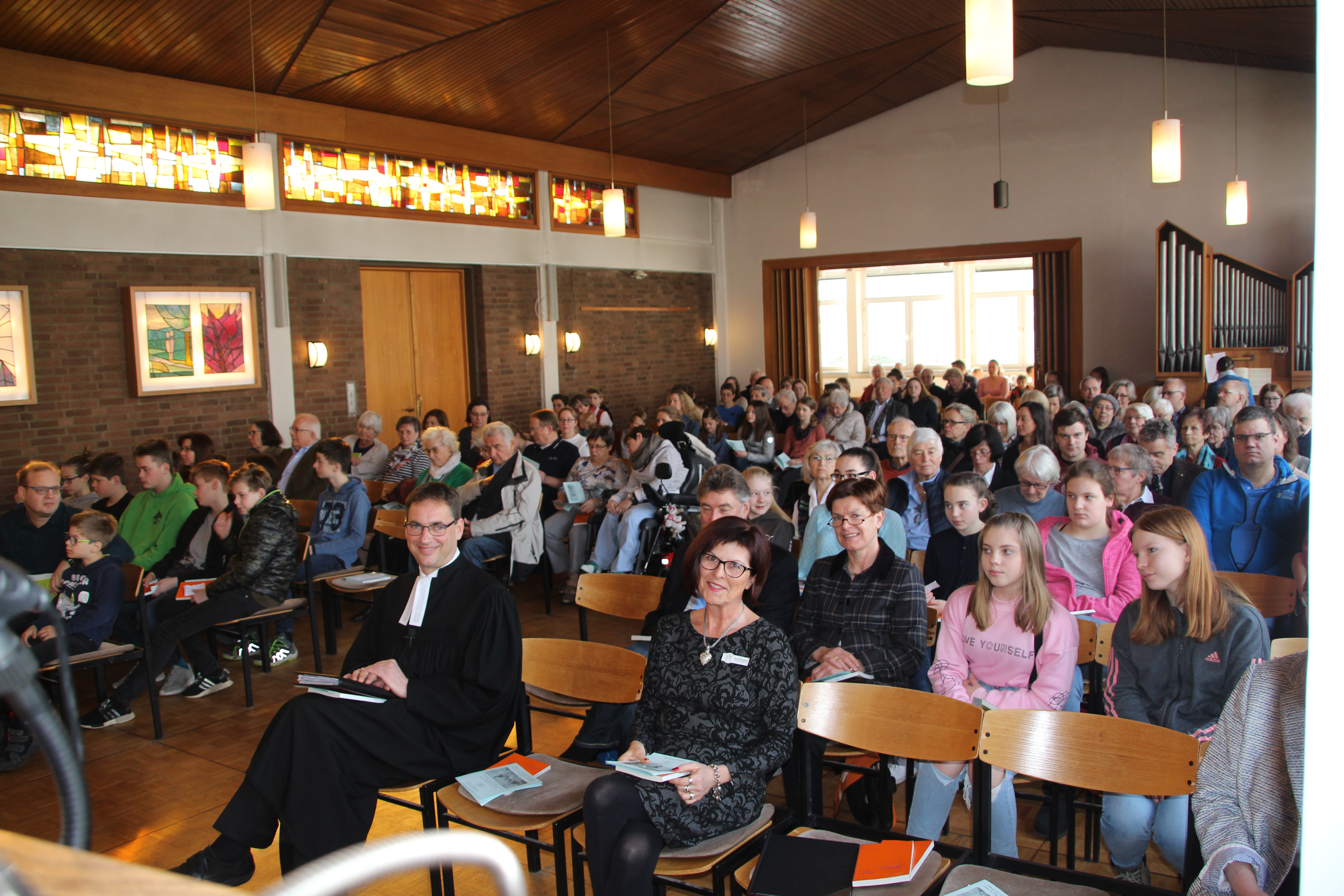 Zur Eröffnung trugen die neuen Konfirmanden ein Lied vor, das sie während ihres ersten Konfi-Tages einstudiert hatten und sangen dabei sogar im Kanon. Dank der Begleitung durch die Band hatten viele Lieder dieses besonderen Gottesdienstes einen beschwingten Charakter und brachten gleichzeitig die dem Anlass und der Passionszeit angemessenen Inhalte zur Geltung.