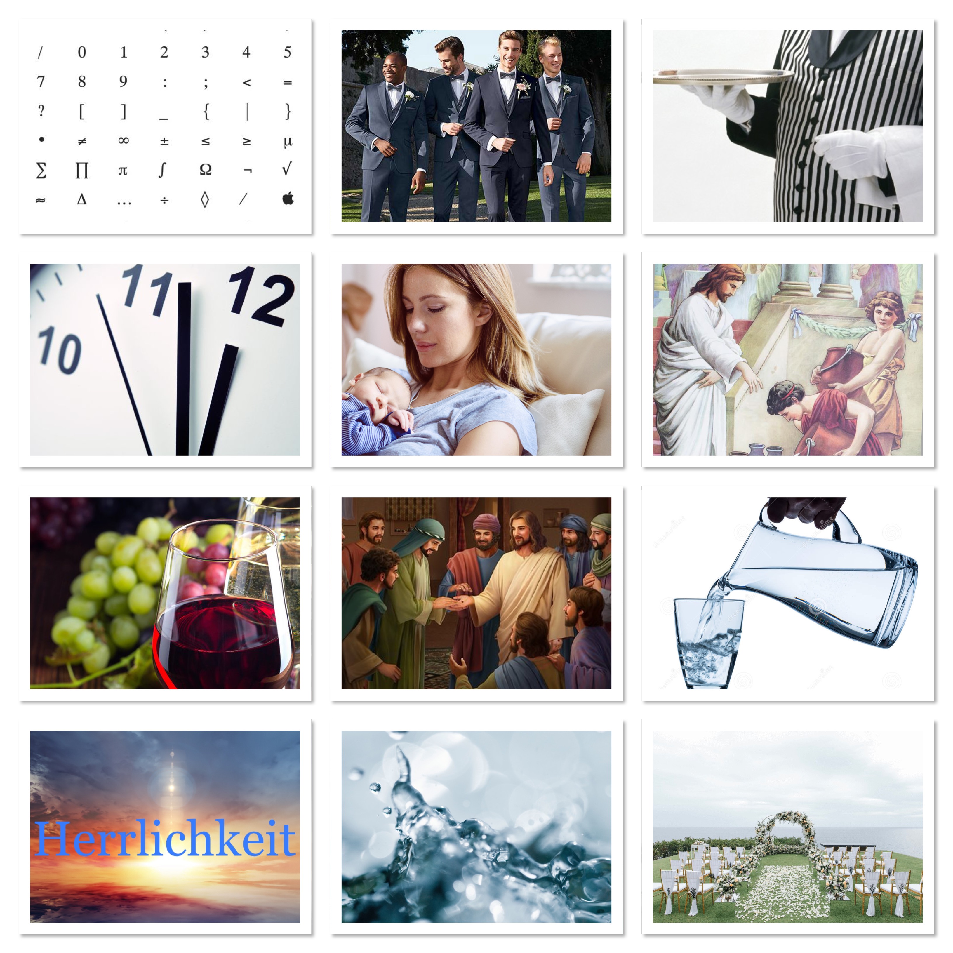 Und am dritten Tage war eine Hochzeit zu Kana in Galiläa, und die Mutter Jesu war da. Jesus aber und seine Jünger waren auch zur Hochzeit geladen.