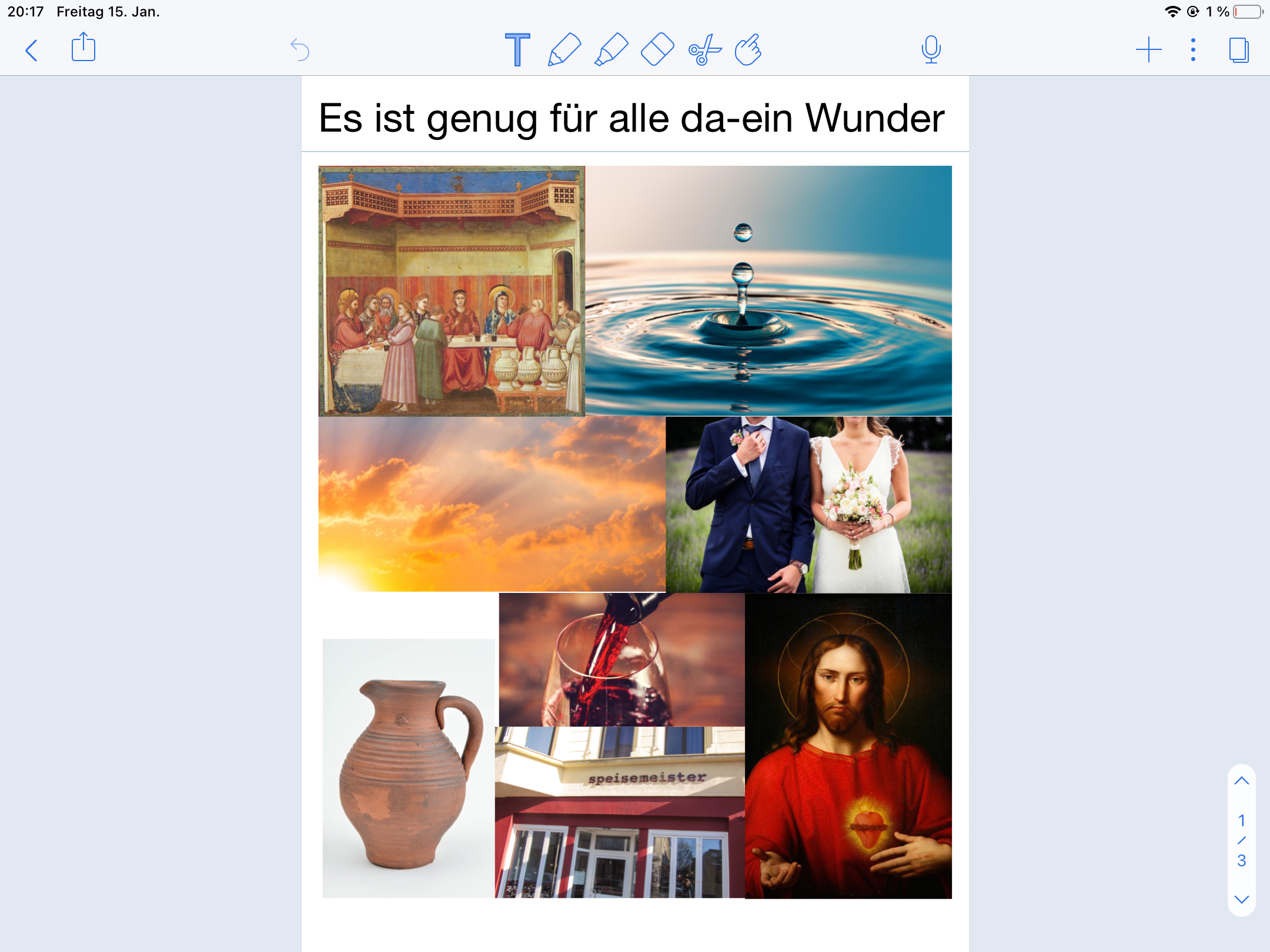 Zurzeit findet unser Konfirmandenunterricht nur digital statt. Die Konfirmandinnen und Konfirmanden hatten die Aufgabe, Wörter in der Umgebung zu suchen, herauszufinden, um welchen biblischen Text es sich handelt und dann daraus eine Collage zu erstellen.